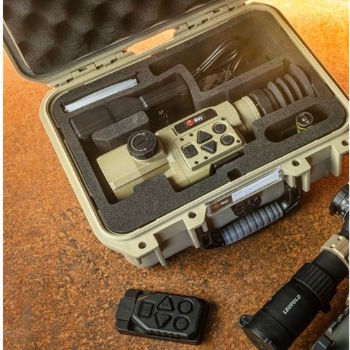 Like other HYBRID series models, the HCH50R can be used as a clip-on thermal (with day scope magnification up to 10×) or as a dedicated thermal weapon sight. The industry’s first available 10 µm sensor increases pixel density by 44%, providing high resolution while reducing the overall size of the unit. Powered by a 18650 cell rechargeable battery , the HCH50R includes a Bluetooth remote for seamless clip-on control and a secure DLOC Picatinny rail mount for quick, repeatable attachment. The HCH50R comes with a durable hard case for reliable protection in the field.